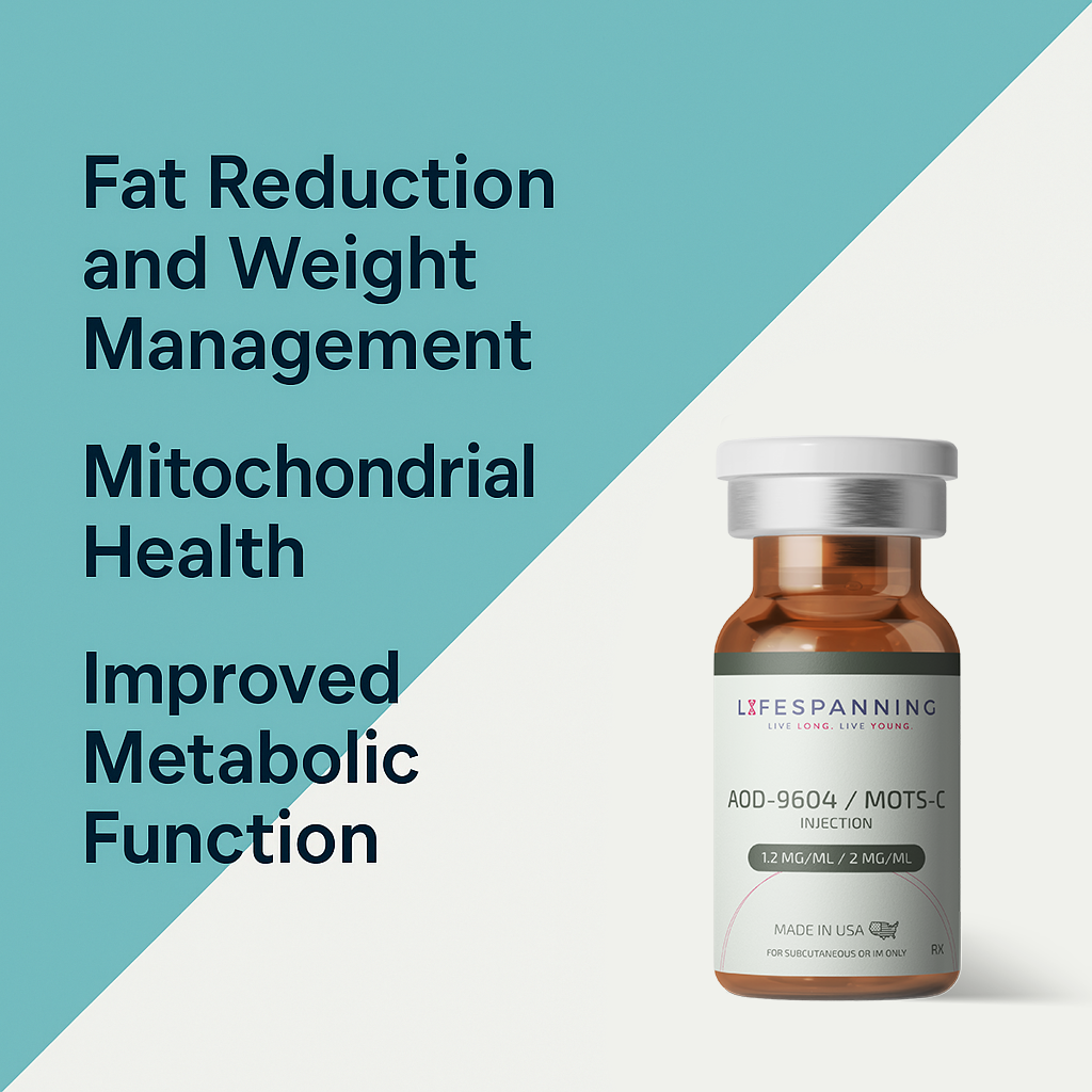 Together, AOD-9604 and MOTS-C work on both the macro (fat reduction) and micro (cellular energy) levels. The blend is ideal for individuals seeking to optimize body composition, boost mitochondrial efficiency, and support a more youthful metabolic profile, without overstimulating the endocrine system.