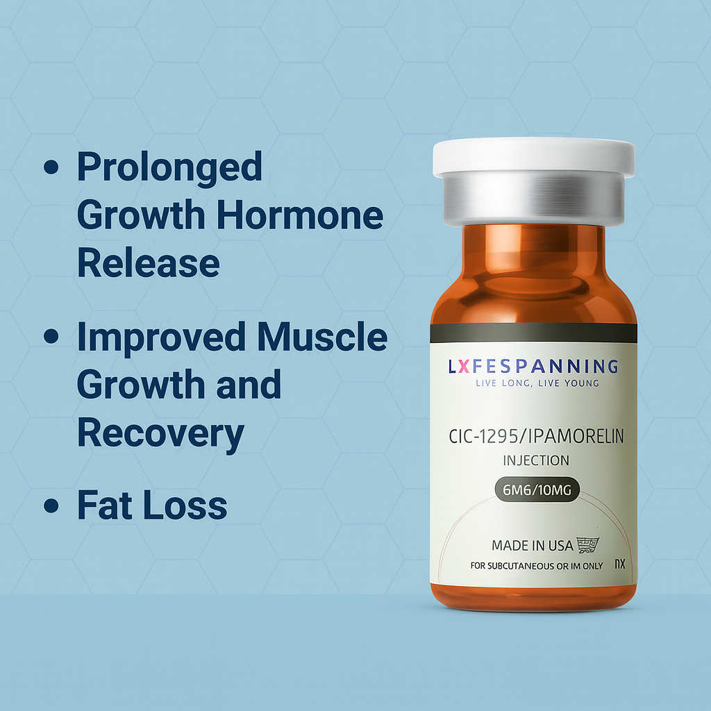 Increased GH levels can promote muscle protein synthesis, aiding in muscle growth and faster recovery from workouts or injuries. Ipamorelin is a pentapeptide (Aib-His-D-Trp-Phe-Lys-NH2) that selectively triggers GH release from the anterior pituitary via the ghrelin receptor, without spiking cortisol or prolactin. Because of this specificity, it’s the go-to for research on GH axis modulation, lean-mass accrual, and metabolic homeostasis, delivering clean GH pulses for anabolic and restorative studies.